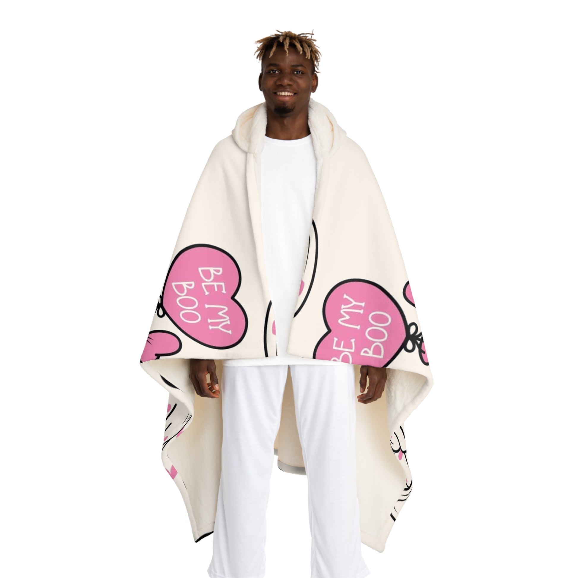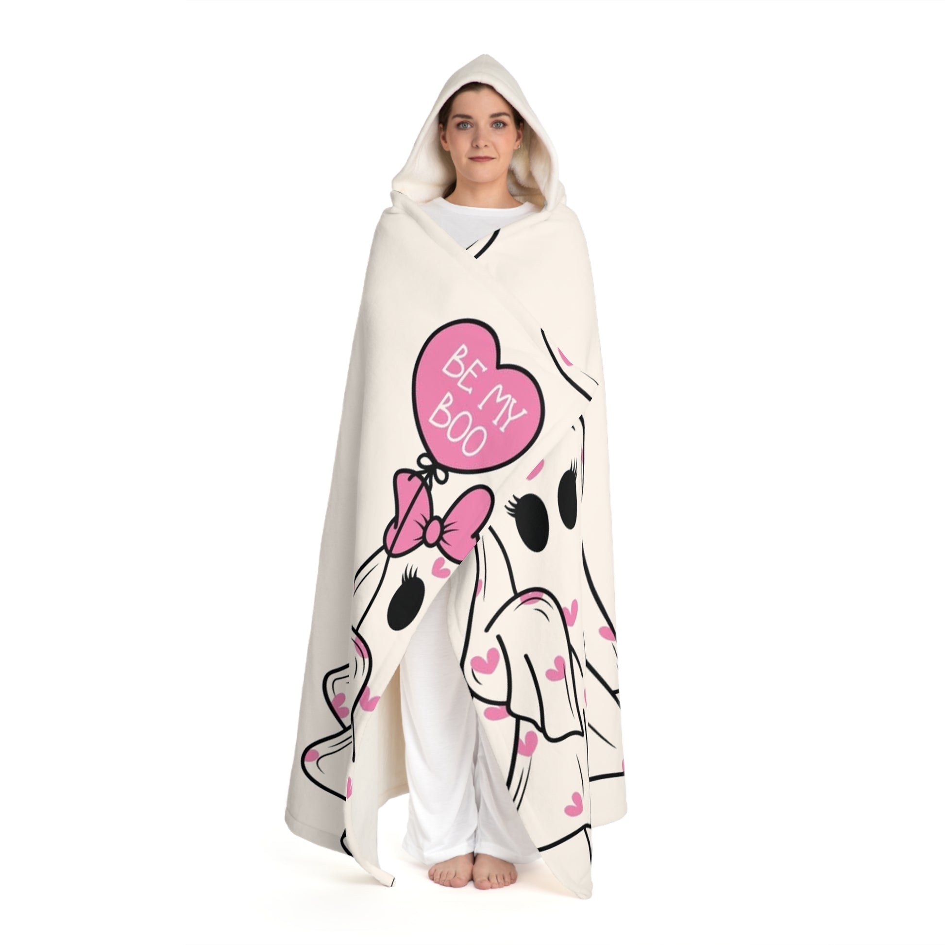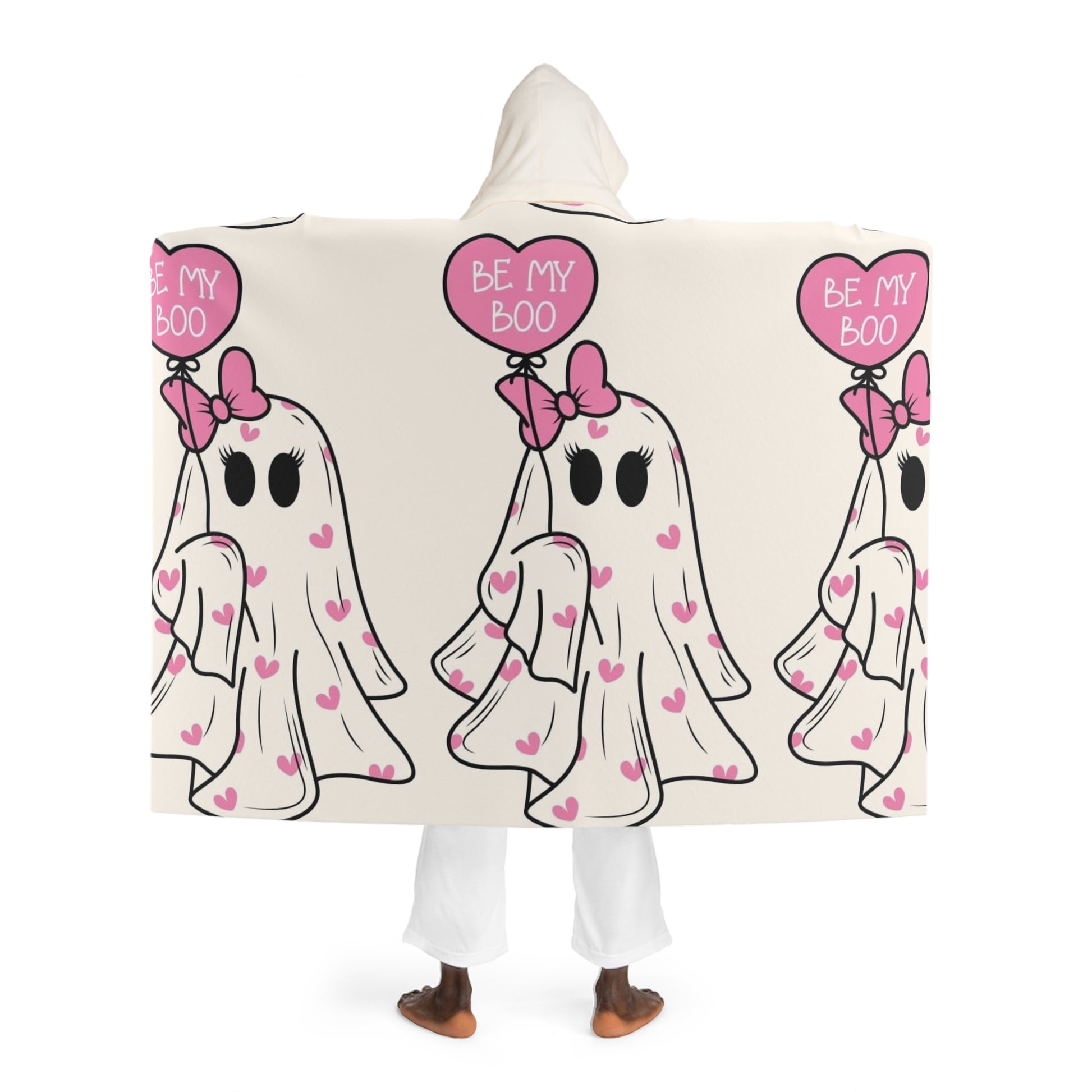 Cute Ghost-Themed Hooded Sherpa Blanket, Cozy Fleece Throw for Halloween, Valentine's Day, Gifts for Couples, Warm Home Decor